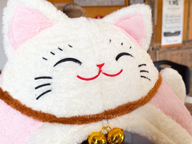 Un Adorable dodo niche pour chat Maneki Neko, parfait pour les chats qui aiment les grottes / les nids douillets. Super kawaii ! Couleur rose et 2 gros grelots. Lavable en machine en cycle délicat. Parfait pour chat jusqu'à 5kg.
